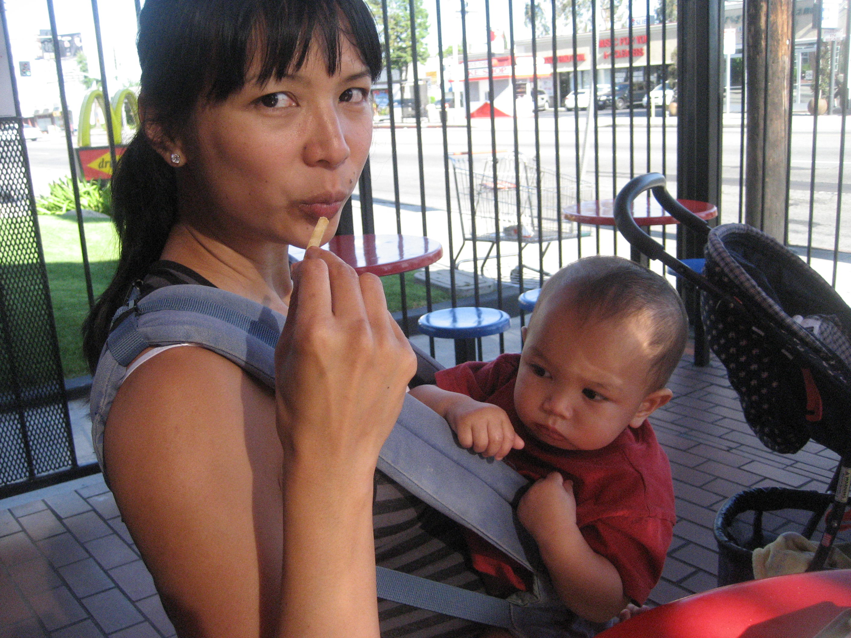 Mommy gang life is good sometimes. Women you don’t know suddenly appear like guardian angels to help you. I was at the Americana in Glendale with 2 month old Axel in the ERGO baby carrier and 2 1/2 year old Lulu. Lulu was having one of her non-stop, louder than 11, putting Faye Dunaway in Mommy Dearest to shame, tantrums. I was in the parking lot without a stroller. She refused to walk to the car. Lulu started running full speed toward oncoming cars. I scooped her up out of harm’s way. Lulu was kicking and screaming. I was carrying both her and Axel. We were all crying. This woman in Abercrombie sweats appeared. Clearly a mommy taking her alone time shopping at the Americana. She looks at me. “Let me help you. I’ll take the baby . Where is your car?” I hand Abercrombie sweat pants my new baby. I am carrying screaming Faye Dunaway. We walk to my car. Abercrombie mommy waits for me to buckle Lulu into her car seat. Then she hands me Axel. OMG. Seriously? I say, “Thank you.” She says, “I’m a Mom. I get it.” WHOA. Familia.